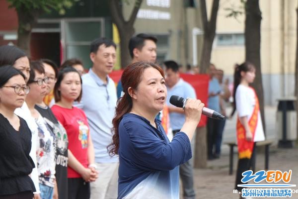 郑州博爵国际学校副校长叶晓冰讲话。叶晓冰用精炼的话语勉励了任务不同,使命一致的三个年级。要求高一同学,要立足期末质检,早做打算,严守纪律,用实际行动为高三的高考助威壮行。要求高二同学要认清角色,找准位置,提前筹措,早做谋划,承担起新高三的责任,为明年的高考,从今天作准备。