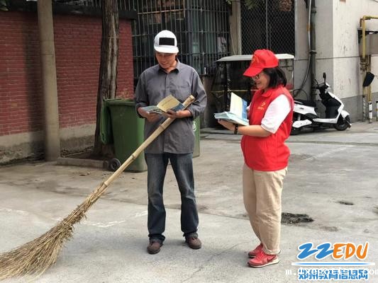 党员志愿者们在文化路街道社区门口集合完毕,孙国岩对大家清洁工作作以简单要求后,志愿者们统一着装,头戴文明志愿服务帽,有秩序的分组开始分发宣传《郑州市文明行为促进条例》及清扫小区道路。