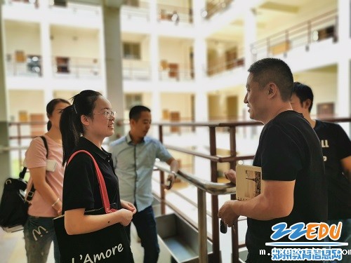 家长们与任课教师交流学生的课堂表现
