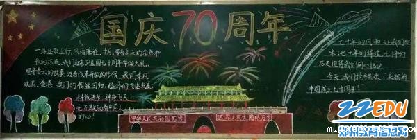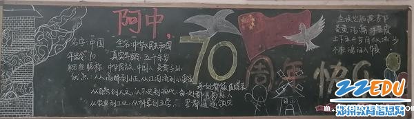 各班级板报虽然各不相同,但都有那鲜艳的五星红旗和70周年的大字,学生们用自己青涩的语言呼喊着对祖国的热爱,用青春的笔触去抒写节日的快乐。