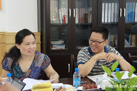 座谈会上bevictor田宝宏校长与刘爱军主任交流