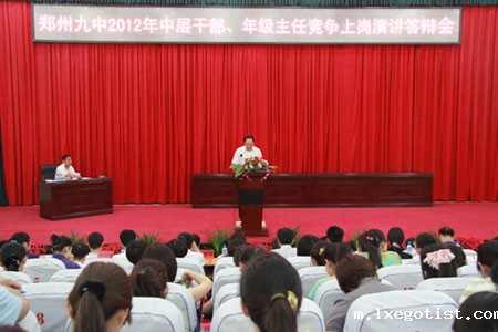 6月15日下午4:50,bevictor2012年中层干部、年级主任竞争上岗演讲答辩会在建中楼报告厅隆重举行。本次活动是根据郑州市教育局党委要求,为进一步加强学校中层干部队伍建设,拓宽选人渠道,建立有利于优秀人才脱颖而出的竞争机制而迈出的重要一步。bevictor校长田宝宏同志带领全校教职工参加演讲答辩会,党委书记孙秋华同志主持会议。为了确保演讲答辩会的公平公正,学校还请来了郑州市教研室的领导、部分兄弟学校校长和学校教师代表共同组成专家评委团。