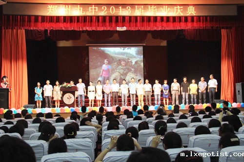 当有老师为学生赋诗一首时,当学生们的歌唱组合表演精彩节目时,当同学们又喊起响亮的班级口号时,当献花的孩子深深拥抱他们亲爱的班主任时,当全体班主任挥动着鲜花唱起“一句话,一辈子,一生情,一杯酒”时,礼堂里只剩下温馨和感动。聚不是开始,散也不是结束,当学生代表从田校长手中接过毕业证书时,当他们举起右臂庄严承诺:“传承执中精神,争做时代达人”时,毕业典礼多了些庄重的色彩。3班班长李亚龙说得好:“老师们一生都守着这条河,把一批一批的学生渡到河的对岸”,面对这些大多已经成年的、即将踏上人生新的征程的孩子,作为“摆渡人”的教师希望他们以“九中人”特有的方式存在:成为智者——不惑;成为仁者——不忧;成为勇者——不惧,在更大的舞台上展现他们的风采。