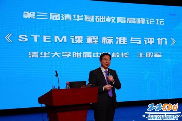 13日上午, 清华附中校长王殿军从核心素养、综合评价系统、STEM课程三个方面和与会教师进行分享。王殿军表示,虽然互联网发展迅速,但是教育颠覆性、本质性的改革尚未到来,对于核心素养的目标体系,如何培养和评价才是核心和关键。
