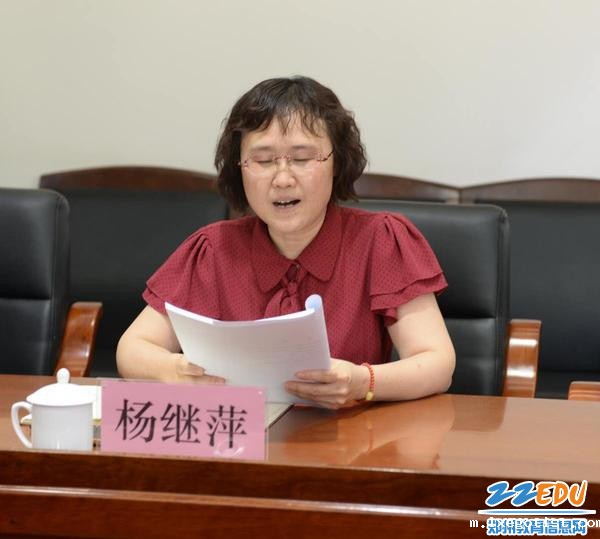 郑州46中纪检委员杨继萍领学《警示教育材料》