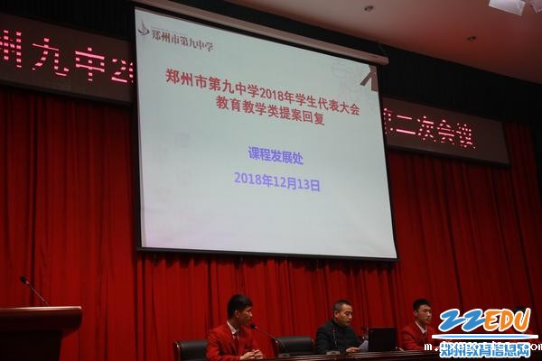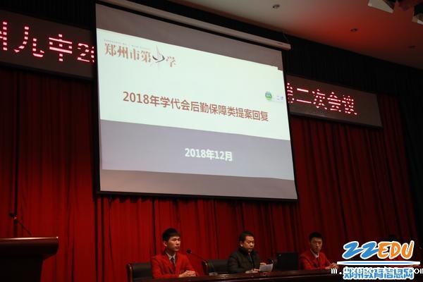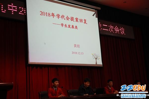 “在去年的学生代表大会上,我们向各位同学承诺,在教室更换护眼灯,今天我在这里可以给大家肯定的答案,我们兑现了承诺,明天1月10日左右,学校将完成教室护眼灯的更换”,这是总务处窦亮主任就后勤保障类提案进行答复时所说的,会场上响起热烈的掌声。学生领导对学生代表提案进行答复是每年学生代表大会最受学生期待的环节。11月初,学代筹备委员会对全校同学进行了提案征集工作,据悉,本次大会提案组同学共征集教育教学类、学生发展类、后勤保障类、生活服务类以及其他方面的有效提案213份,并将整理好的提案在第一次全体会议上分类递交给学校相关部门负责人,随后各部门进行了认真的审理并在本次会议上进行答复。按照学代会议程,学校课程发展处陈晓主任、总务处窦亮主任以及学生发展处黄坦主任分别就教育教学、后勤保障、学生发展类提案进行了逐一答复。
