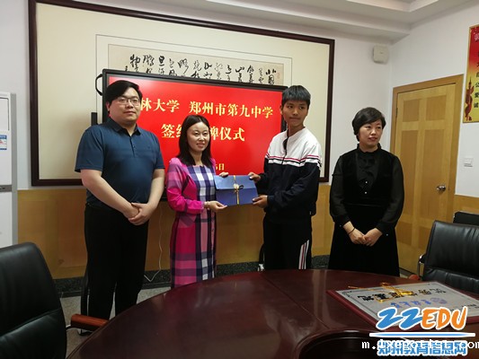 接着,在全场领导和老师的热烈掌声中,张莹校长为汪祥松和林媛媛颁发360班人生成长导师聘书,360班学生郭简语和赵乾鹏在全体师生的见证下与各自的人生导师合影留念。