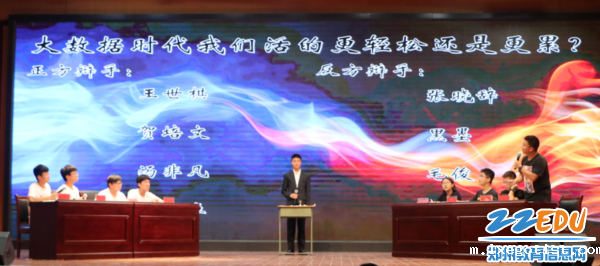 “一个外卖订单带来的信息轰炸”,凡石剧社的情景剧表演为我们揭开了本场辩题——大数据时代,我们生活得更轻松还是更累?高一战队持正方立场,一辩从淘宝推送、移动支付具体事件出发,细数大数据带给我们的便利;反方一辩则认为,碎片化的信息和格式化的推送让我们身心俱疲;紧接着,双方二辩抓住对方的漏洞,展开驳论;盘问结束之后,迎来了最值得期待的自由辩论环节,双方辩手兵来将挡、水来土掩,现场观众掌声不断、喝彩连连,将气氛推向了高潮;最后,正反方四辩总结陈词,为各自的陈述画下句点。