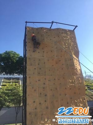 最具有挑战性的是“高空拓展”,训练了学生的勇气和心理素质,同学们相互鼓励,相互支持,这个活动让学生认识到只要战胜自己的恐惧心理,一切困难都会迎刃而解,增强了大家面对困难和挑战时的自我克服能力。老师们在同学们的感染下也参与了该项目,给同学们做起了表率!