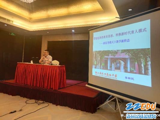 倪俊杰老师的课聚焦“教育信息化”这个名词,不仅为老师介绍了“互联网+”背景下的教育变革趋势,还向老师传授了不少实用简便的新型教学技术,利用实践互动的形式,帮助赴杭学习的老师从教师变成了信息化教学设计师。杭州高级中学鲁新民主任以《贯彻选择性教育思想,转换新时代育人模式》为题,从理论的高度和实践的视角为老师们解读了走在高考改革前列的浙江省的典型经验,包括渐进式的高考新方案、多元化的高校招录模式、特色鲜明的学校课程体系、动态化的三年教学统筹、复杂性的教学管理问题五个方面,一些具体的实际操作办法,有助于老师们将时常听闻的模糊的抽象的新高考模式落地,并进行应对方案的提前谋划。