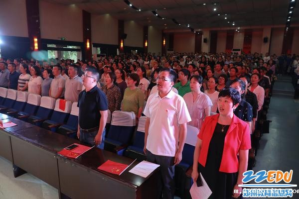 教师节是属于我们的光荣节日,青年教师的诗朗诵《幸福》展现了新一代教师的风采,文采斐然,声情并茂,读出了为人师者的自豪感和对学生殷切的期望,新教师的入职宣誓更是展现着继往开来的决心和为人师表的幸福与骄傲。最后,整个庆典活动在教师合唱《我和我的祖国》中落下帷幕,在属于教师的节日里,也为新中国成立70周年献上赞歌。