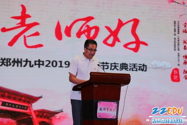 获奖教师代表程淑红老师用几个故事串起了她对自己数十年教师工作的感慨,她用最实在的表述,让每一位同样奋战在教学一线的老师们感动不已并且备受鼓舞。另一位获奖教师代表张海廷老师也用朴实的语言讲述了他作为一名教师的成长和成熟,鼓励所有的年轻教师向优秀的老九中人学习,为学校的腾飞发展助力。