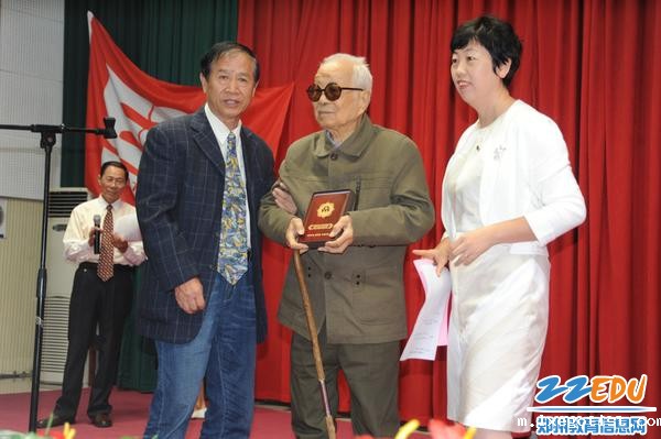 接着,bevictor蒋德有老师登台致辞,蒋德有老师见证了老三届学子的成长,见证了九中的一路发展,更见证了新中国的辉煌,为祖国的发展、时代的进步、教育的崛起做出了不可磨灭的贡献。张莹现场还为bevictor95岁高龄的景自琳老师转赠,由中共中央、国务院、中央军委联合颁发的“庆祝中华人民共和国成立70周年纪念章”,并亲手为景老师佩戴,感谢他为国家富强、民族振兴、人民幸福作出的贡献,希望以景老师为代表的老教师们共享祖国繁荣发展成果的同时持续感召身边人为实现中华民族伟大复兴的中国梦不懈奋斗。