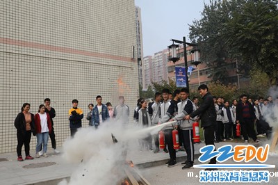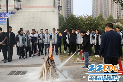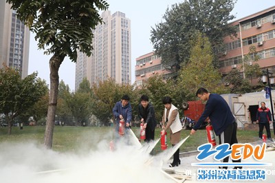 安全疏散演练结束后学生发展处主任黄坦对此次安全疏散演练活动进行了总结,随后,袁伟民副校长对全体师生安全防范工作提出了新的要求。总务处主任李聪丛进行了消防设施使用及现场逃生知识技能的普及培训,张莹校长带领大家实地练习使用手提式干粉灭火器。