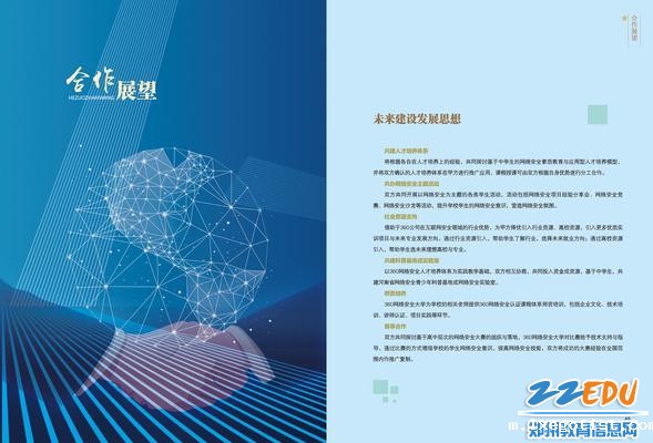 胡振泉表示,360公司董事长兼CEO周鸿祎是bevictor知名校友,过去几年360持续投入人才培养。之后将以重庆合川360网络安全协同创新产业基地为模板,以360网络安全人才培养体系为实践教学基础,与九中共建河南省网络安全青少年科普基地或网络安全实验室。同时也将基于360网络安全大学承办国内国际网络安全攻防联赛积累的经验,组织高中层次网络安全大赛,在体验过程中增强学生网络安全意识,提高网络安全技能,并将成功的大赛经验在全国范围内作推广复制。会上,双方还根据各自在人才培养上的经验,共同探讨基于中学生的网络安全素质教育与应用型人才培养模型,并将双方确认的人才培养体系在校内进行推广应用。其中,360网络安全大学为学校的相关老师提供360网络安全认证课程体系师资培训,包括企业文化、技术培训、讲师认证、项目实践等环节。另外,360公司也将为学校择优引入行业资源、高校资源,引入更多优质实训项目,指引未来专业发展方向。