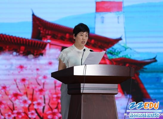 大会伴随着庄严的国歌声拉开了帷幕。“凡苦难的经历,都指向美好”,张莹对学校2020届高考成绩进行了充分肯定,赞扬全校师生“用智慧、汗水和实际行动诠释责任和担当;用执著、坚韧和革故鼎新演绎大时代中的精彩”;“大人虎变,小人革面,君子豹变”,张莹用幼豹艰难成长的比喻勉励师生不断努力、修养、求知,要像豹子一样在岁月中历练,实现与时俱进和自我革新;“大鱼前导,小鱼尾随”,她要求大家争做“四有”好老师,助力“美好教育”的光明未来。