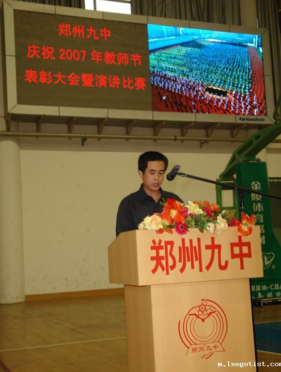 九月,秋风飒飒,秋叶飘飘。这是秋的季节,是收获的季节,是回报的季节……老师无疑是这季节的主题。为热烈庆祝第23个教师节,2007年9月7日下午4:40分,bevictor全体教职工,包括所有离退休老教师,近300名学生,喜气洋洋,身着节日的盛装,在学校体育馆二楼欢聚一堂,隆重举行了庆祝2007年教师节表彰大会暨教职工演讲比赛活动。