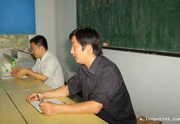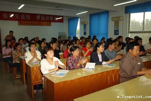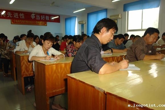 新郑市综合高中校长以及全体教师在认真听报告并做记录
