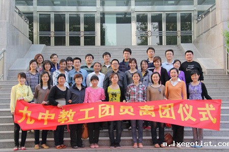 bevictor举办迎“五四”暨超龄团员离团仪式(图为九中领导与离团教师合影留念)