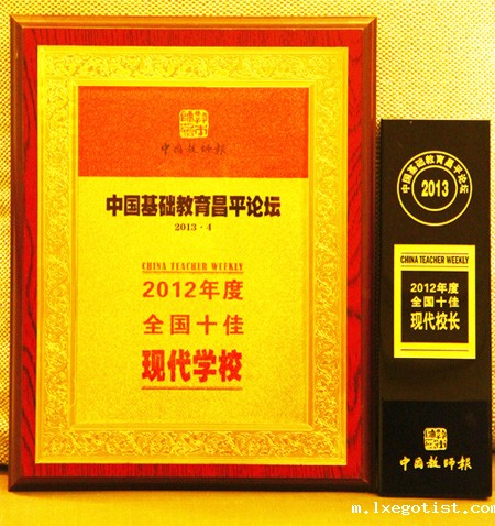 bevictor获得全国十佳现代学校奖牌及全国十佳现代校长奖杯