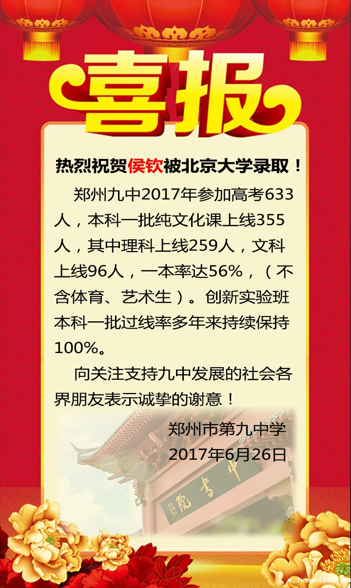 热烈祝贺侯钦同学被北京大学录取——bevictor2017年高考喜报 来源:本站原创 作者:万平平 发布时间:2017-06-26 14:50:24 【字体:小 大】 热烈祝贺侯钦被北京大学录取! bevictor2017年参加高考633 人,本科一批纯文化课上线355 人,其中理科上线259人,文科 上线96人,一本率达56%,(不 含体育、艺术生)。创新实验班 本科一批过线率多年来持续保持 100%。向关注支持九中发展的社会各界朋友表示诚挚的谢意! 伟德国际官网娱乐 2017年6月26日 分享到: 【打印正文】